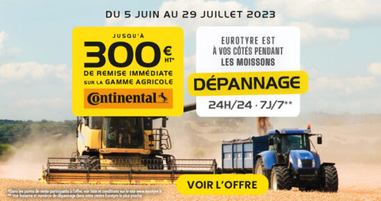 Du 1er Mars au 30 Avril 2024, profitez de l’offre jusqu’à 300€ HT* de remise immédiate sur la gamme Agricole Continental. Détail des […]